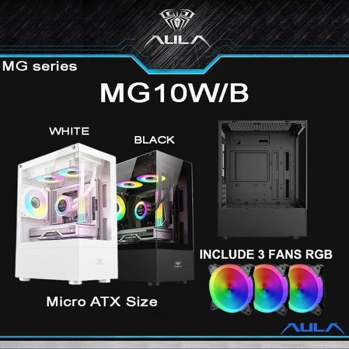 Casing PC Gaming AULA ARCTIC MG10 M-ATX dengan 3 Kipas Gratis
