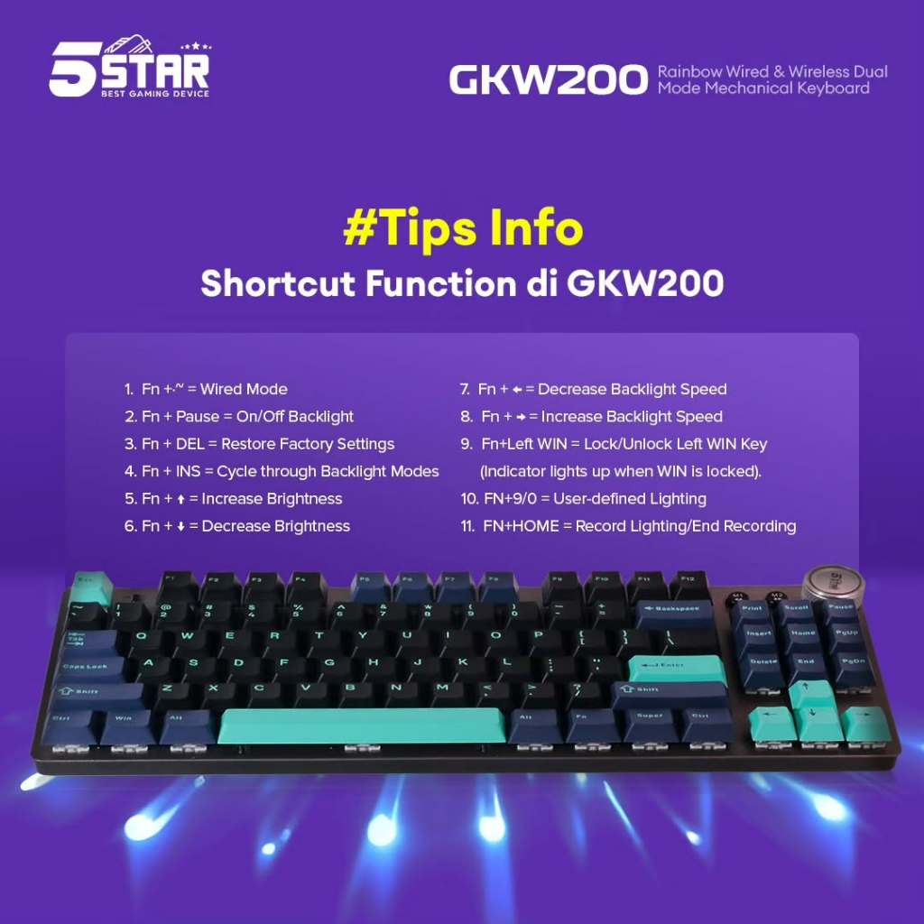 Beranda / Produk / Keyboard / Keyboard Gaming Mekanik GKW200 RGB 2.4G Wireless dengan Dual Mode dan Desain Modern