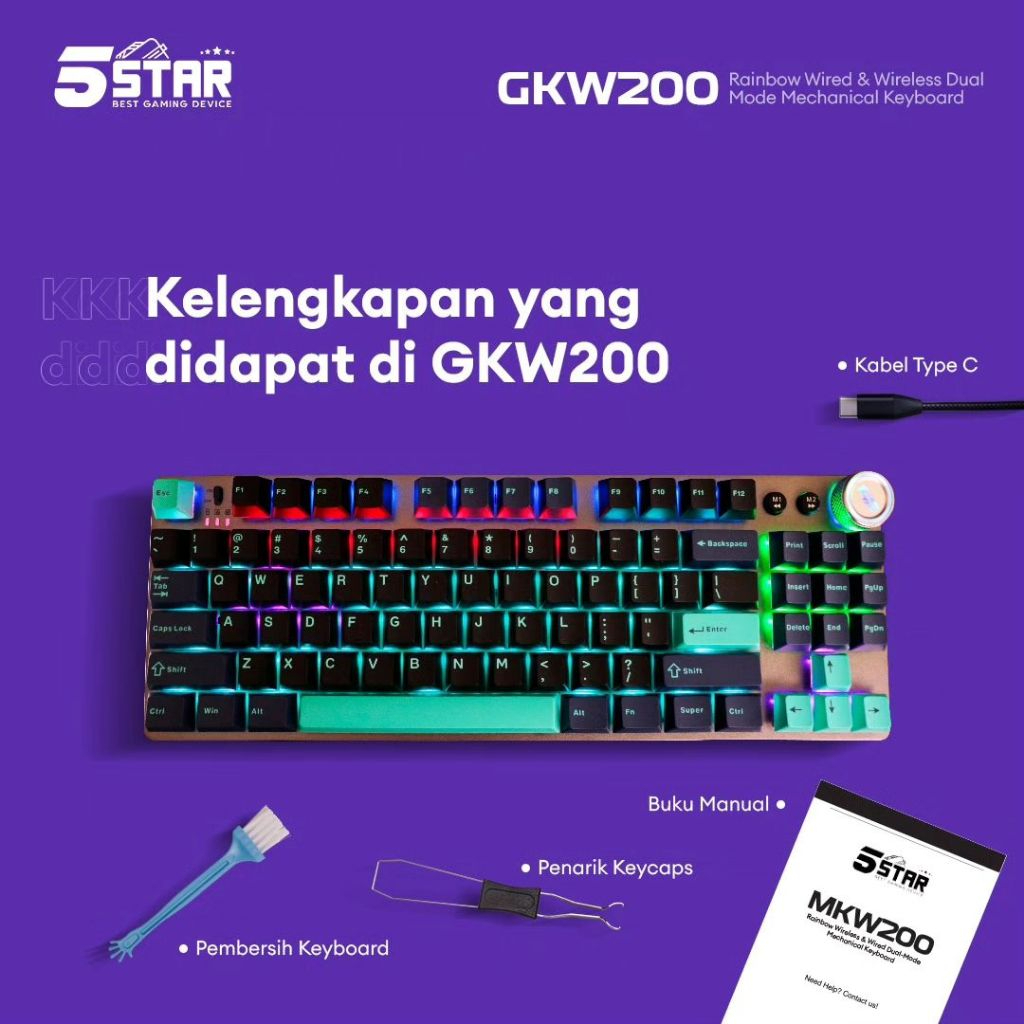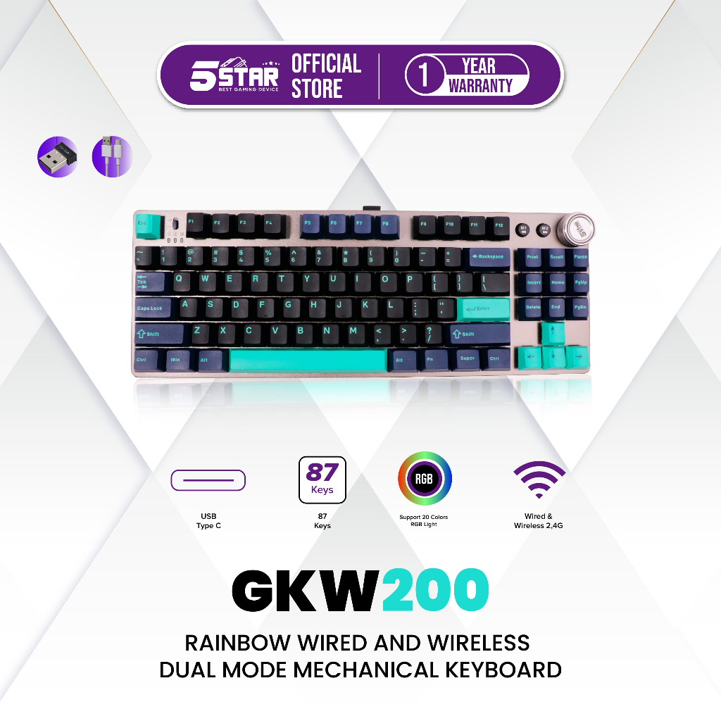 Keyboard Gaming Mekanik GKW200 RGB 2.4G Wireless dengan Dual Mode dan Desain Modern
